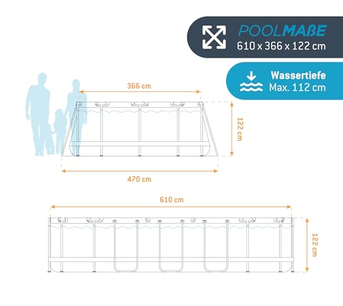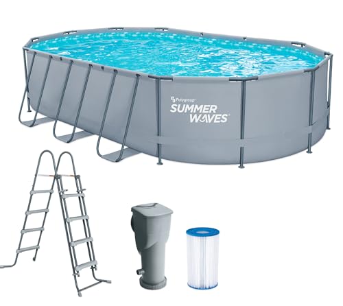 - ABMESSUNGEN: Dieser Pool von Summer Waves ist oval, 610 cm lang und 366 cm breit. Die Höhe des Gartenpools beträgt 122 cm und bietet Platz für bis zu 9 Personen!