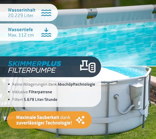 - IM LIEFERUMFANG ENTHALTEN: Dieser Swimmingpool wird inklusive eines Filtersystems mit Filterkartusche, Bodenvlies, Abdeckplane und einer Einstiegsleiter geliefert. Raus aus der Hitze, rein in das kühle Nass!