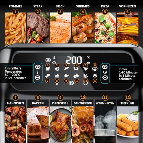 Arendo - Heißluftfritteuse 12 Liter - Multifunktions Mini