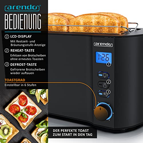 - Der 1500W starke MANHA 4-Scheiben Toaster mit umfangreicher Ausstattung und höchstem Bedienkomfort: Display mit Restzeitanzeige | 6 Bräunungsgrade | Brötchenaufsatz