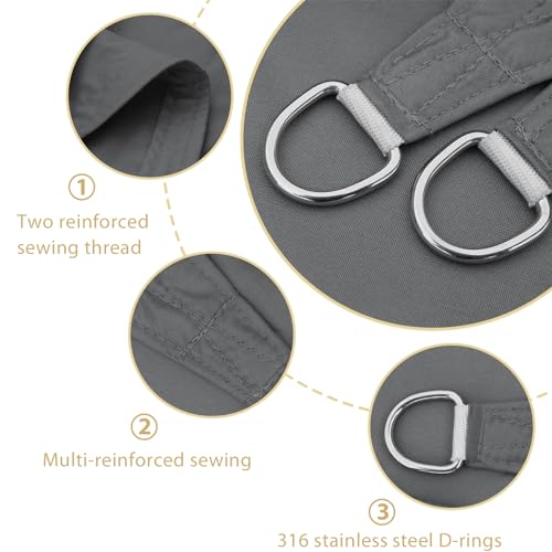 - Wasserdichtes Sonnensegel aus wasserfestem Polyester (160g / ㎡ PES polyester), Feuchtigkeit / Schimmel / Flecken. Es wird nicht für die Verwendung bei Gewittern, starken Regenfällen, Stürmen und Schneetagen empfohlen.Das Erzeugnis ist aus zwei Stoffen genäht