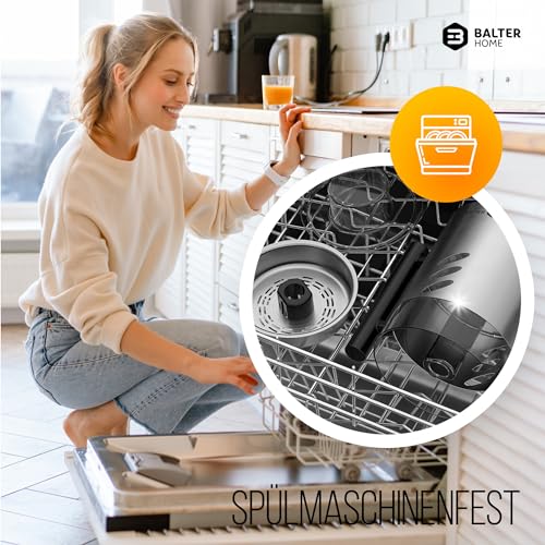 - BALTER Edelstahl Wasserkocher mit Temperatureinstellung, 45°C-100°C, Doppelwand, BPA frei, leise & kabellos, Warmhaltefunktion, Teekocher mit Temperaturanzeige, 1.5L, 2200W, Schwarz