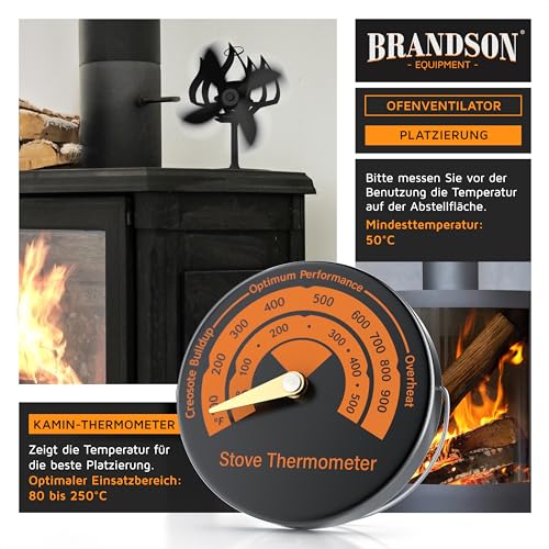 - BITTE BEACHTEN SIE: Der Brandson Kaminventilator eignet sich optimal für Kaminöfen ohne Verkleidung aus Naturstein, Speicheröfen und solche aus Speckstein. Messen Sie vor dem Kauf die Temperatur auf der Standfläche, um sicherzustellen, dass eine Temperatur von 50°C oder mehr erreicht wird.