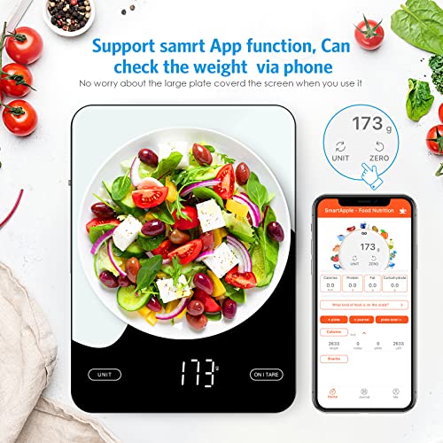 - 【Mehrfach Verwendbare Küchenwaage】Die Waage ist nicht nur zum Messen von Nahrungsmitteln, sondern auch eine Küchenwaage und eine Kaffeewaage. Durch die Steuerung der intelligenten APP kann sie das Wiegen von Backen, Salat, Kochen und Barkeeper realisieren. Die Berechnung von Nährstoffen wie Kalorien, Proteinen, Fetten, Vitaminen usw. hilft Ihnen, den Nährstoffgehalt von Lebensmitteln zu verstehen, Mahlzeiten besser vorzubereiten und die Lebensqualität zu verbessern.