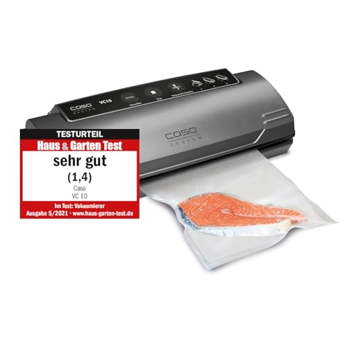 - CASO VC9 Vakuumierer - Vakuumiergerät, Lebensmittel bleiben bis zu 8x länger frisch - natürliche Aufbewahrung ohne Konservierungsstoffe, 30cm Schweißnaht bei beliebiger Länge, inkl. 10 Profi-Folienbeutel