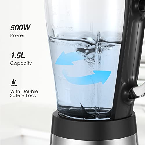 - Leistungsstarker 500-Watt-Mixer: Der Standmixer ist mit einem 500-Watt-Motor ausgestattet, der eine leistungsstarke Klick-Geschwindigkeit für eine schnellere und reibungslosere Arbeit bietet, egal ob es sich um einen cremigen Smoothie oder ein eisgekühltes Getränk handelt.