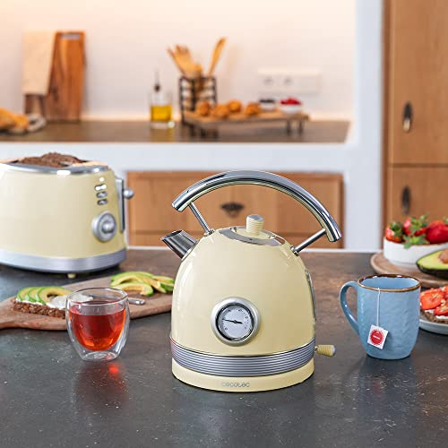 - Cecotec ThermoSense Elektrischer Wasserkocher 420 Light Beige, 1,8 Liter, 2200 W, Temperaturmessung, Basis 360 Grad, Edelstahl, Vintage-Stil, Beige