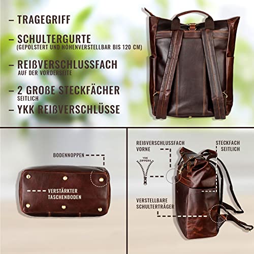 - Corno d´Oro Leder Rolltop Rucksack Groß für Damen und Herren I XL Kurierrucksack bis 20l für 17 Zoll Laptop I Vintage Backpack Laptoprucksack Braun BP171