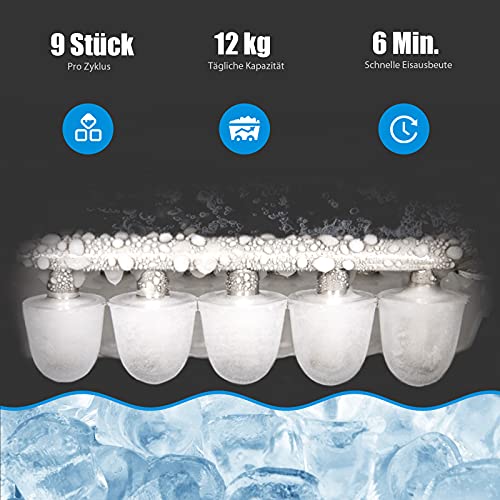 - COSTWAY Eiswürfelmaschine Ice Maker, Eismaschine, Eiswürfelbereiter inkl. Eiswürfelschaufel / 9 Eiswürfel in 8 min / 12kg in 24 Std. / 1,85L Wassertank / 35x25x29,5cm