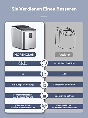 - 🍃 【Wassereinsparend】 Die NORTHCLAN Eiswürfelmaschine leitet die geschmolzene Eiswürfel zurück in den Wassertank, um es wieder einzufrieren, was Zeit und Wasser spart.