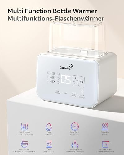 - [8-in-1 Flaschenwärmer baby]: Schnelles Erwärmen/Dämpfen/Lebensmittelerwärmung/Warmhalten für 24 Stunden/Schnelles Auftauen/Konstantes Auftauen/Timer/Einstellbare Temperatur nach Wunsch. Diese Allround-Babyflaschenwärmer verdient es, im Besitz wachsender Familien zu sein