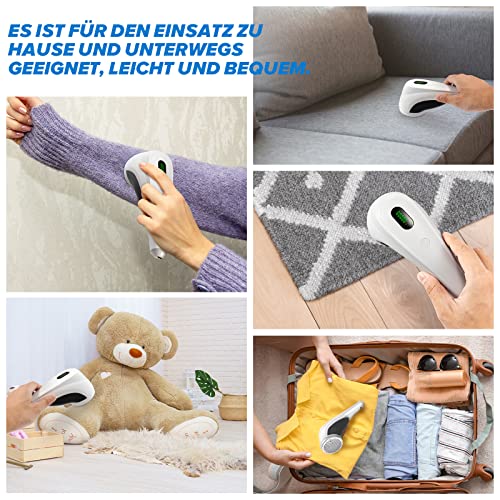 - Fusselrasierer Elektrisch WiredLux - Wiederaufladbarer Fusselentferner für Kleidung & Möbel - Einstellbare 3-Fach Geschwindigkeit, 6-blättrige Klinge, LED-Anzeige, USB-Aufladung (Weiß)