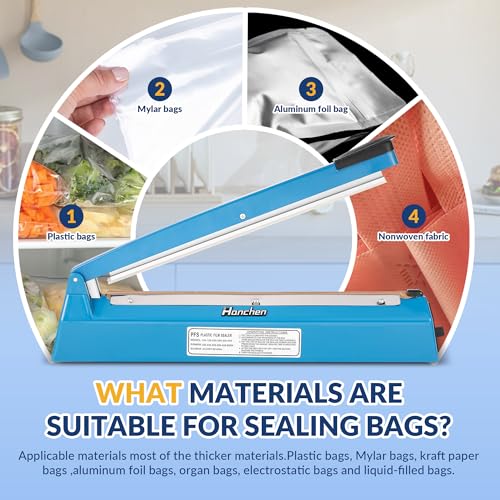 - 【Hohe Anwendbarkeit】 Kann verschiedene Kunststoffe wie PE, PP mit unterschiedlicher Dicke und andere Materialien wie Vliesstoffe leicht abdichten, wodurch die meisten Verwendungsanforderungen erfüllt werden. Perfekt für Haushalt, Lager, Supermarkt zum Verpacken von Süßigkeiten, Schreibwaren, Drogen usw.