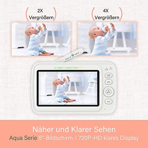 - KAWA Babyphone mit Kamera und Audio, 5 Zoll 720P HD Display, Zwei-Wege-Talk, Nachtsicht, 4000mAh Akku, VOX-Modus, Temperatursensor, Schlaflieder, 1000 Fuß , smarte Meldungen