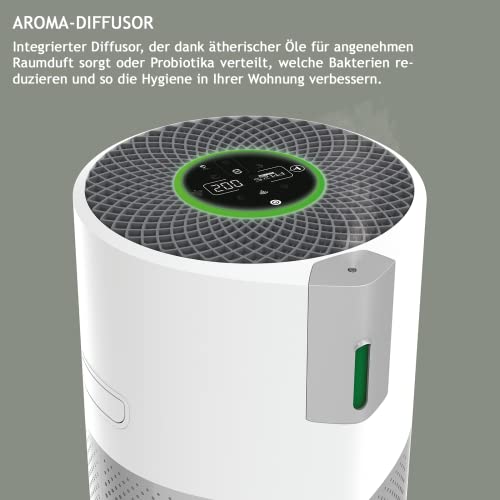 - ANGENEHMES RAUMKLIMA: Das Gerät ist mit einem Duftöl-Zerstäuber ausgestattet, der neben Duftölen auch Probiotika zerstäuben kann, die dazu beitragen, Oberflächen zu hygienisieren.