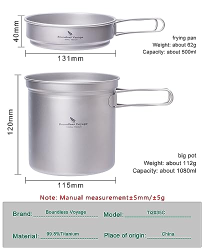 - iBasingo Titan Topf Pfannen Set mit Klappgriff Im Freien Camping Suppe Topf Schüssel Bratpfanne Essgeschirr Ultraleicht Kochgeschirr Für Picknick Reisen Wandern Ti1585I