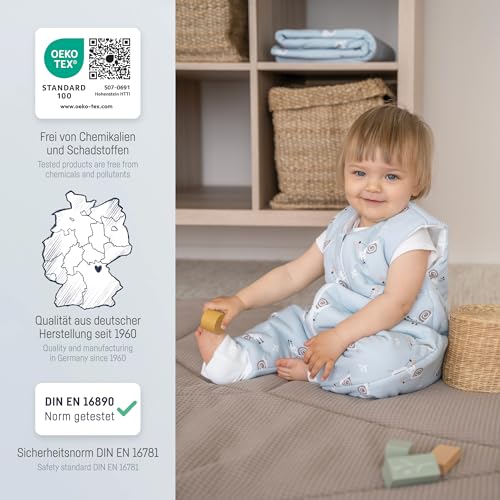- Premium Baby Schlafsack Sommer, Bequem & Atmungsaktiv, 100% Bio-Baumwolle, OEKO-TEX Zertifiziert, Flauschig Weich, Bewegungsfreiheit, 1.0 TOG von emma & noah (Wal Blau, 110cm (104/116))
