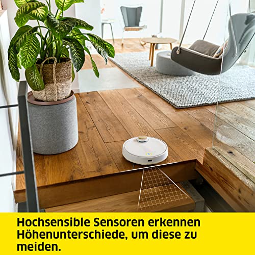 - Clevere App-Steuerung: Mit der Kärcher Home Robots App lässt sich eine Raumkarte der Wohnung speichern, Reinigungsparamter festlegen, Verbotszonen definieren und ein Reinigungszeitplan einrichten