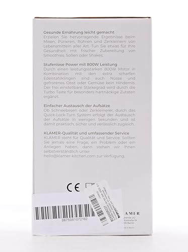 Wir hoffen, Sie so bei der Suche nach dem gewünschten Produkt unterstützen zu können und wünschen viel Freude an KLAMER Stabmixer Set 800 Watt, 4 in 1 Pürierstab Edelstahl.
