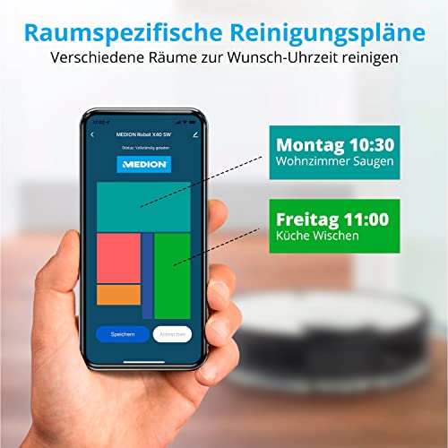 - MEDION Saugroboter mit Absaugstation und Wischfunktion X20 SW (Lasernavigation, Starke 3000Pa Saugkraft, Alexa 2in1 Roboterstaubsauger, präzise Kartenerstellung, Go & No Go Bereiche, mehrere Etagen)