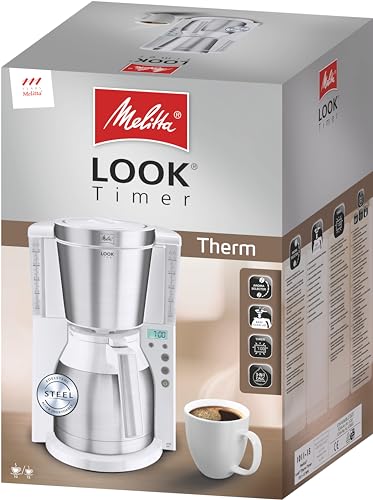 - Lieferumfang: 1 Melitta Look Therm Timer 1011-15, Filterkaffeemaschine mit Thermkanne und Timer-Funktion, Weiß, 1000 Watt