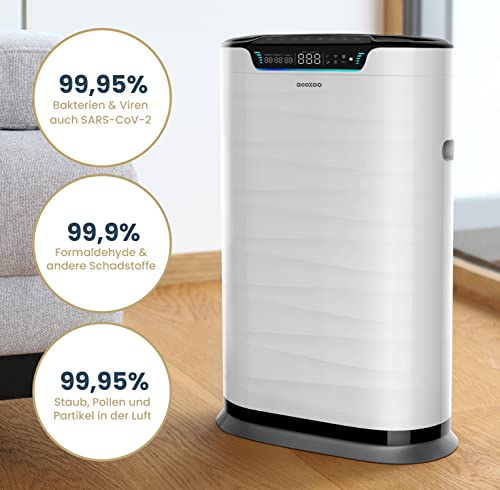 - 【99,95% Luftreinigung】 dank Mehrschicht-Filterstruktur des Luftfilters, bestehend aus einem waschbaren Vorfilter, Filtersieb, Pollen- & Staubfilter, Schadstoff-Filter, Komposit-Kohlefilter, Geruchsfilter, Ionisator und einem H13 HEPA-Filter wird dafür gesorgt, dass mindestens 99,95% aller Partikel wie Pollen, Tierhaare, Staub, Viren und Bakterien von nur kleiner 0,3 µm Größe effektiv gefiltert werden.