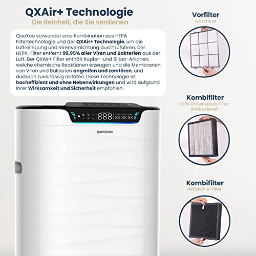 - 【Jetzt bestellen】 Nutzen Sie die Vorteile unseres Raumluftreinigers von QooXoo und bestellen Sie noch heute Ihren eigenen QXPure. Mit unserer Zufriedenheitsgarantie, dem schnellen Support, den erfahrenen Experten und der hohen Qualität unserer Produkte haben Sie die Gewissheit, dass Sie die beste Entscheidung getroffen haben. Erleben Sie selbst die effektive Filtration und das angenehme Wohnklima durch den QooXoo Air Filter.