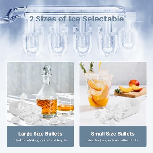 - Silonn Eiswürfelbereiter, 9 Würfel in 6 Minuten fertig, 26 Pfund in 24 Stunden, selbstreinigende Eismaschine mit Eisschaufel und Korb, 2 Größen von Bullet Ice für Küche, Büro, Bar und Party