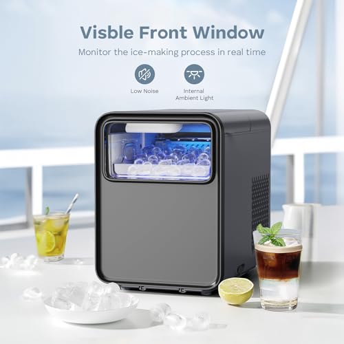 - ❄【Neues Design-Upgrade】Ausgestattet mit einem transparenten Frontfenster und integriertem Umgebungslicht, ermöglicht es Ihnen, den Eisproduktionsprozess sogar nachts in Echtzeit zu beobachten und bietet Ihnen mehr Sicherheit und Vergnügen. Das seitliche Entwässerungsdesign erleichtert die Reinigung und macht Ihr Leben entspannter.