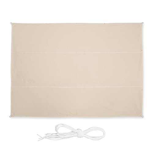 - Relaxdays Sonnensegel rechteckig, wasserabweisend, UV-beständig, mit Spannseilen, Terrasse, Balkon, BxT: 4 x 6 m, beige
