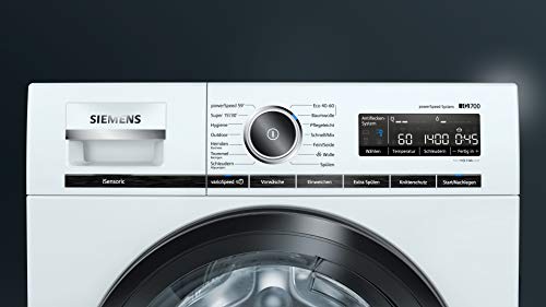 - Siemens WM14VG44 Waschmaschine iQ800, Frontlader mit 9kg Fassungsvermögen, 1400 UpM, speedPack XL, Antiflecken-System, multiTouch TFT-Display, Weiß, 60cm