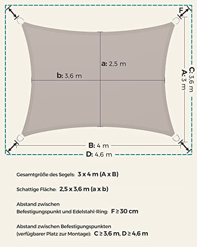 SONGMICS Sonnensegel 3 x 4 m, wasserfest mit Einer