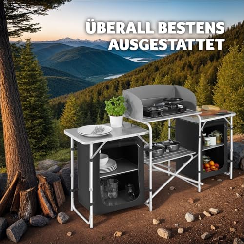- Campingküche - Campingschrank faltbar mit versch, Outdoor Camping Küche| Reiseküche| Zeltschrank| Küchenbox, aus Aluminiumgestell