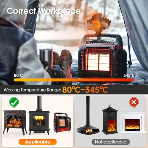 - 【Hinweise】Die optimale Betriebstemperatur für den Ventilator liegt im Bereich von 200°C bis 320°C, bei dieser Temperatur erreicht der Ventilator die höchste Drehgeschwindigkeit. Zu hohe oder zu niedrige Temperaturen beeinträchtigen die Leistung des Ventilators. Beachten Sie bitte, dass dieses Produkt nicht für keramische Öfen geeignet ist, da Keramik keine Wärme leitet.