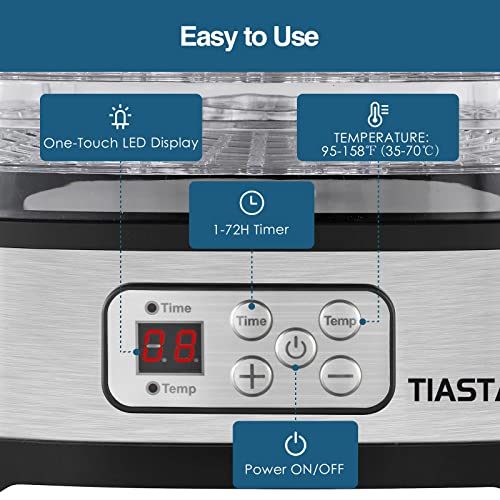 - Tiastar Dörrautomat, Dörrgerät mit 5 Etagen Abnehmbare, 240W Dehydrator mit Temperaturregler 35-70°C, Dörrapparat für Lebensmittel Fleisch Gemüse Obst Trockner, BPA Frei