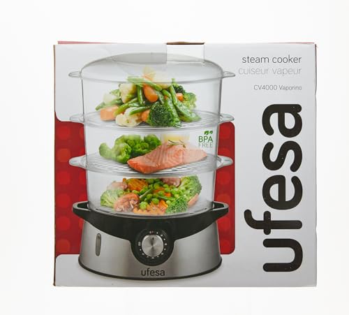 - Gesunde und vielfältige Küche. Mit dem Dampfgarer Ufesa CV4000 800W bleiben alle Nährstoffe, Vitamine und Mineralien der Lebensmittel erhalten. Sie können Gemüse, Fisch, Reis und vieles mehr zubereiten