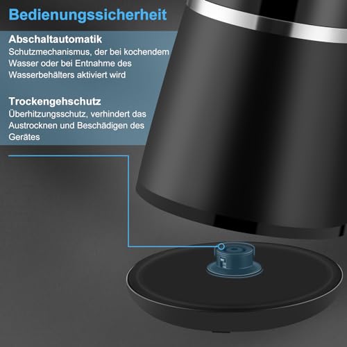 - Kaltfühlend & Lebensmittelecht: Das doppelwandige Gehäuse und der Griff fühlen sich kühl an, damit Sie den Wasserkocher nach dem Erhitzen verbrühungssicher tragen können. Die Innenwand aus lebensmittelechtem SS 304 ist BPA-frei, rostfrei und gesund