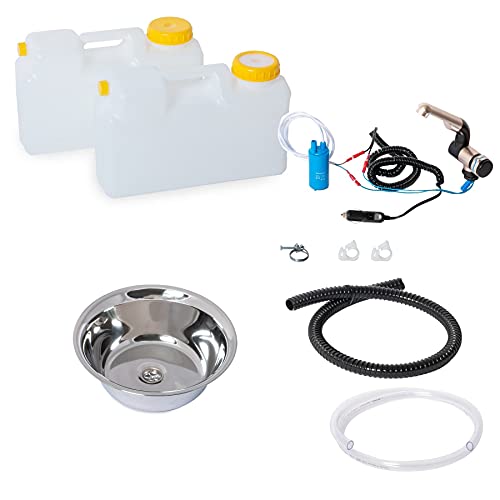 - Wasseranlage Imbisswagen Verkaufsanhänger Campingküche 12v Bausatz Spüle 24cm (240mm) Barwig schwarz/chrom Wasserkanister Weithals 10L (ad-ideen)
