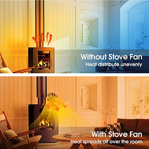 - Kaminventilator, 6 Flügel Ofenventilator ohne strom, Fireplace Fan Wärmebetriebener Kamin Ventilator mit Thermometer, Leiser Zyklus warm/heiße Luft ofenlüfter für Holz-/Holzbrenner oder Kamin