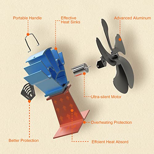 Xoali Kaminventilator, 5 Flügel-Ofenventilator