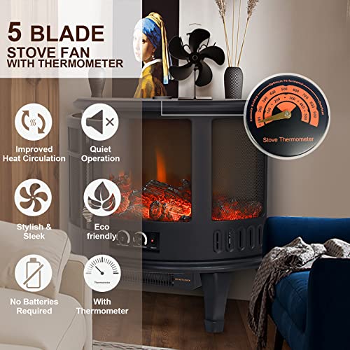 - Kaminventilator, 5 Flügel-Ofenventilator Ohne Strom Leiser Betrieb, Wärmebetriebener Ventilator mit Thermometer, Hitzebetrieben Kamin Ventilator Ohne Strom für Holz/Holzbrenner/Kamin